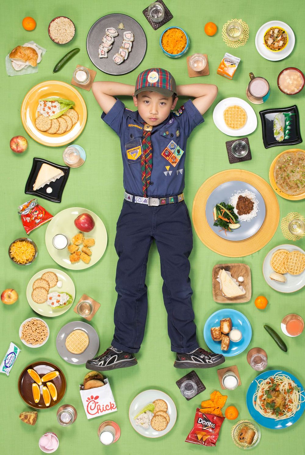 Le photographe Gregg Segal a fait poser des enfants au milieu de tout ce qu’ils mangent en une semaine afin de dénoncer les mauvaises habitudes alimentaires dans le monde: