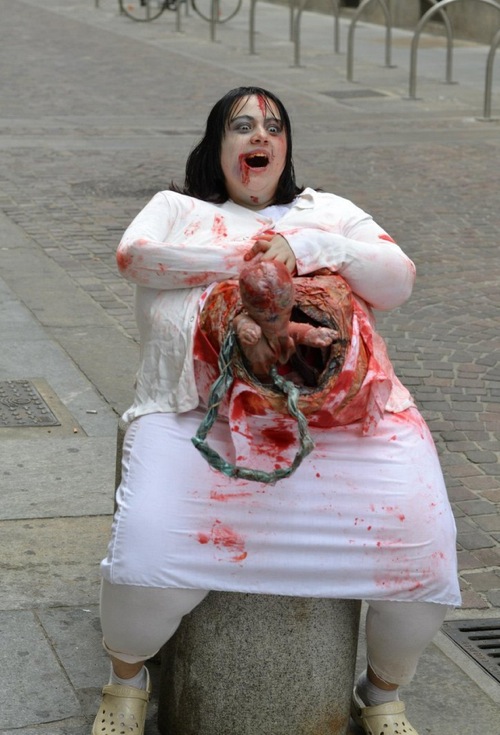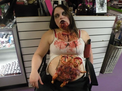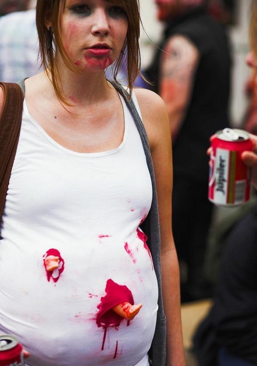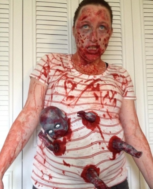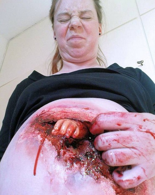 Par Exemple, si vous êtes une fille et surtout enceinte jusqu’au coup, pourquoi ne pas en profitez pour se servir de son jolie ventre pour en faire une horreur ? Après tout, ça donne un effet plutôt pas mal de se la jouer “Regarde, mon bébé sort de mon ventre ! Mais vraiment !”. Bon, voici quelques photos pour vous montrer ce que cela pourrait donner.