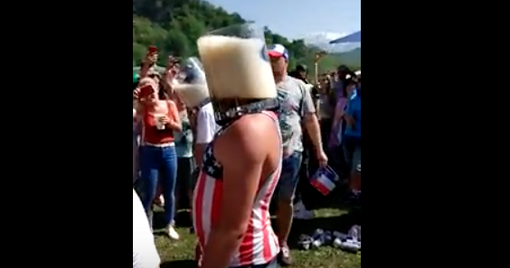 Voici une manière insolite de boire de la bière en “s’amusant”. Lors d’une petite fête en Russie, deux hommes s’affrontent dans un jeu avec des règles assez simples. Les deux hommes enfilent un seau sur la tête avec un fond fermé, ensuite, le seau est rempli de bière. Les deux participants ont la tête submergée de bière et ne peuvent pas respirer. Celui qui gagne et celui qui arrive à respirer par la bouche en premier.