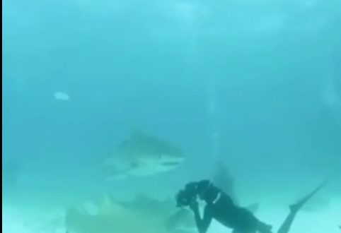 Alors qu’il filmait tranquillement les requins, il a réussi à éviter à temps la mâchoire d’un de ces redoutables prédateurs en esquivant l’attaque de justesse !!!