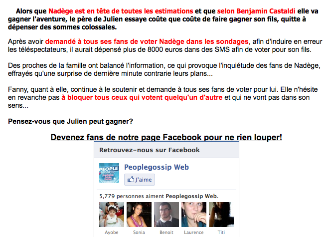 Lorsque vous cliquer sur le site de Gossip qui est finalement géré par JeremStar, vous tombez sur cet article :